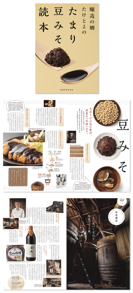 【武豊町観光協会 たまり豆みそ読本】武豊町はたまりと豆みその郷。江戸時代から受け継がれた製法を今も守り続ける6つの蔵の紹介と、武豊町の醸造の歴史を綴った、見応えのあるパンフレット。
